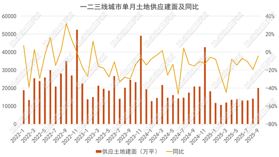 总体来看,9月单月土地供应规划建筑面积为19974.46万平方米,环比上升42%,同比下降4.22%,整体的供应规模环比大幅回升。