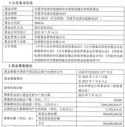 中国经济网北京7月15日讯今日,华夏基金发布华夏华电清洁能源封闭式基础设施证券投资基金基金合同生效公告。
